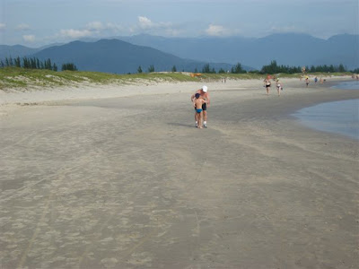 * Foto do vovô caminhando cedinho pela manhã na praia e o netinho o vê ao longe e vai ao seu encontro para dar um beijo.