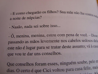 Essa é a escritora Meriam e abaixo, apenas pra dar uma "provinha" e mostrar sua irreverência e jeitinho, fotografei um trechinho de um dos capítulos chamado
